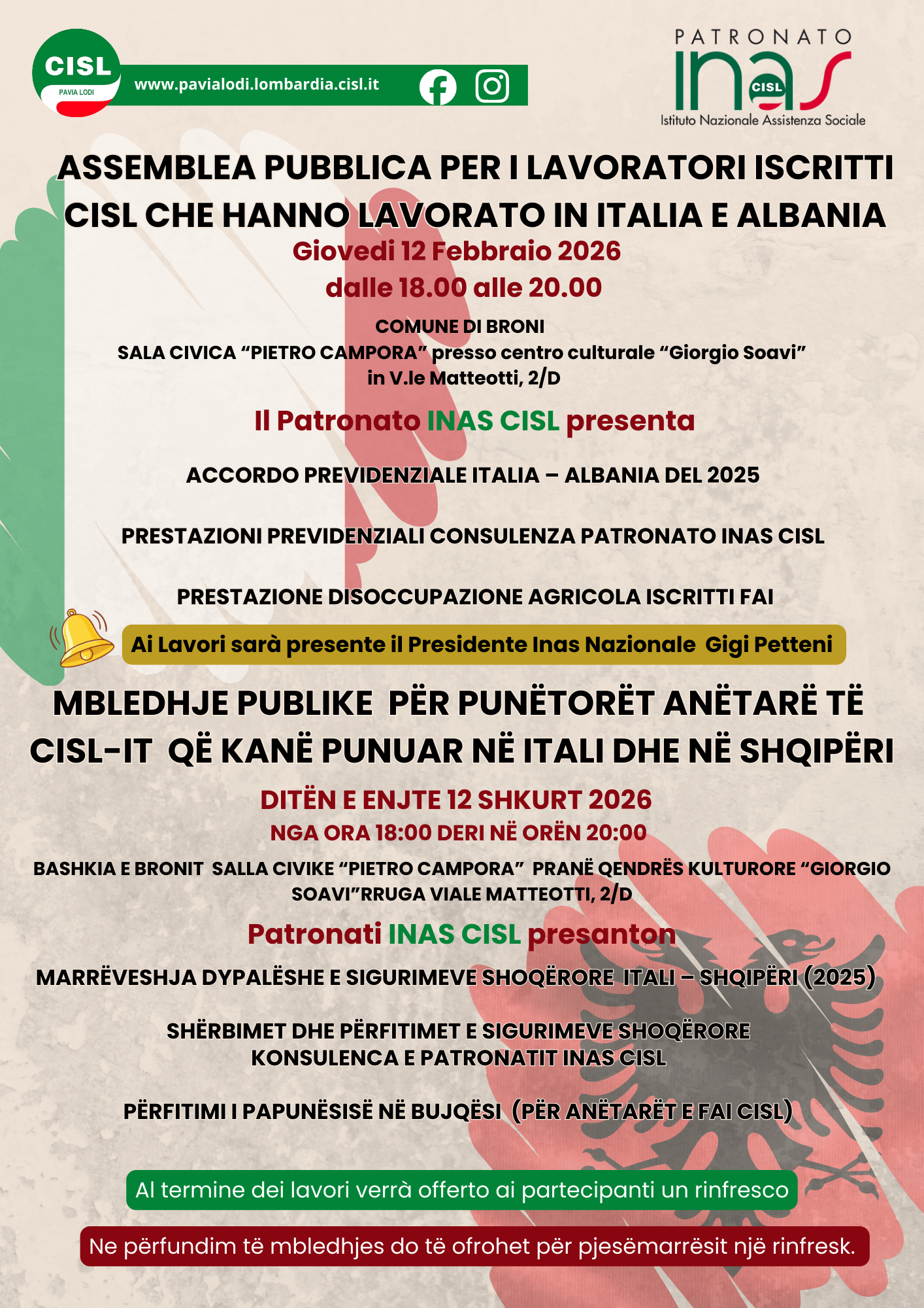 L’approfondimento tecnico sarà affidato al Patronato INAS CISL, che per l’occasione vedrà la partecipazione straordinaria del suo Presidente Nazionale, Gigi Petteni. La sua presenza sottolinea l’importanza strategica che il sindacato attribuisce alla tutela dei lavoratori migranti .