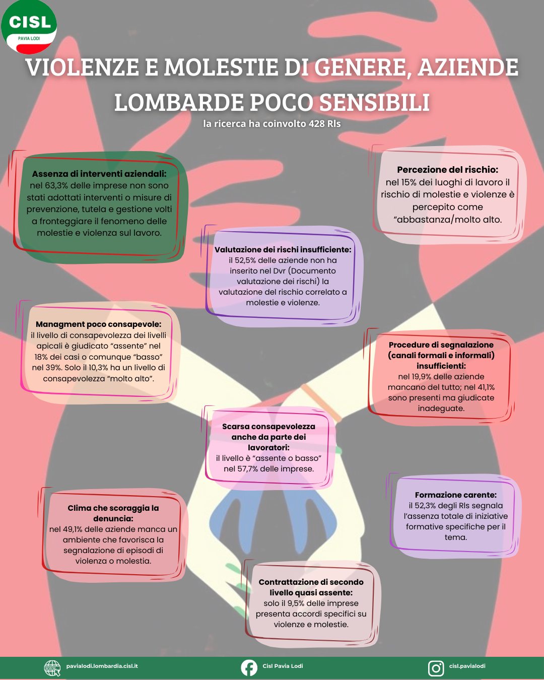 La ricerca intitolata “Prevenzione e contrasto alle violenze e molestie nei luoghi di lavoro,” promossa da Cisl Lombardia e condotta da Bibliolavoro, ha messo in luce una situazione estremamente critica in Lombardia.